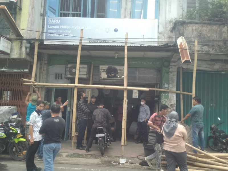 Salim Halim menceritakan, pada Kamis 29 September 2022, Melki, seseorang yang mengaku Kuasa Hukum Nurlinda Paramita, bersama pihak Kelurahan Pasar Baru, Kepling, Babinsa setempat, serta beberapa orang tukang, datang secara paksa memasang tiang peranca di bangunan ruko yang dihuni Sugito dan Elisa.