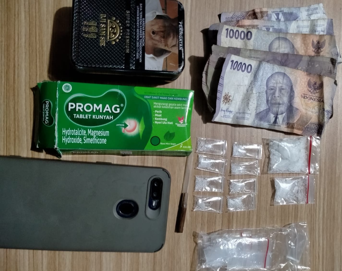 Tersangka yang diamankan adalah Ramiadi (44) dengan barang bukti berupa 10 plastik klip berisi sabu, 1 pipet ujung runcing, 1 bungkus plastik klip kosong, 1 kotak kaleng warna hitam, 1 kotak bertuliskan Promag, 1 unit ponsel, dan uang tunai Rp50.000,-.