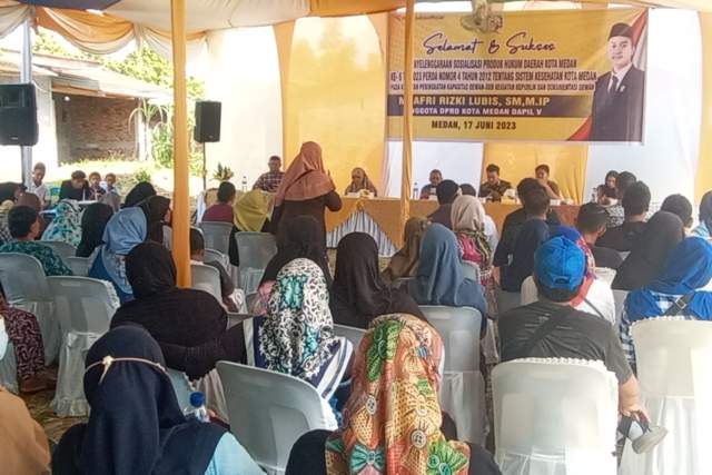 Pertanyaan ini dilontarkan warga saat anggota Dewan Perwakilan Rakyat Daerah (DPRD) Kota Medan, M Afri Rizki Lubis SM MIP melaksanakan Sosialisasi Peraturan Daerah (Perda) Nomor 4 Tahun 2012 Tentang Sistem Kesehatan Kota Medan, di Jalan Sari Ujung No 56, Kelurahan Kedai Durian, Kecamatan Medan Johor, Sabtu (17/6/2023).
