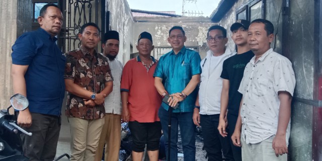 MEDAN, - Ketua DPRD Medan Wong Chun Sen Tarigan meninjau lokasi kebakaran di Jalan Aluminium Gang Mustawi, Tanjung Mulia, Kecamatan ...